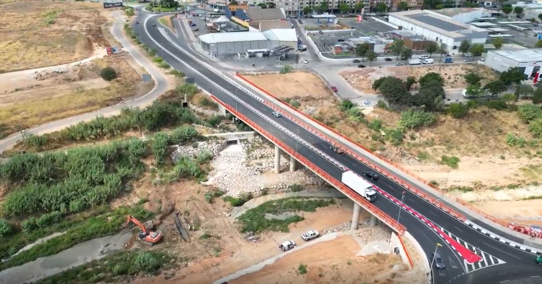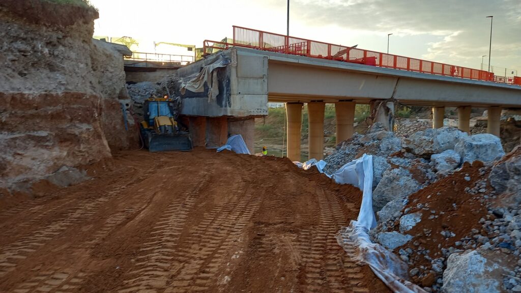 Obras de emergencia para la reparación del puente de la carretera CV-403 sobre el barranco de Chiva y la CV-36, gravemente afectado por la DANA de octubre de 2024.